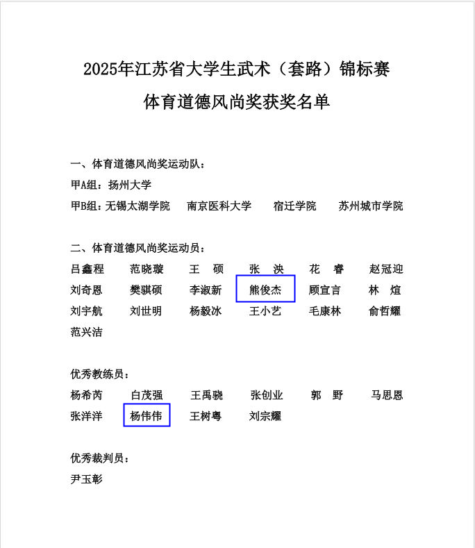 | 我院在江苏省武术(套路)锦标赛喜获佳绩 | |||||